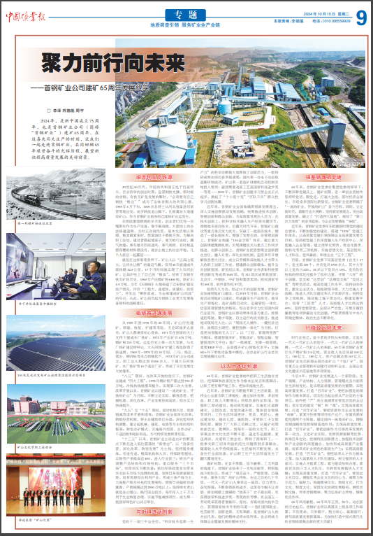 《中国矿业报》专版:聚力前行向未来——首钢矿业公司建矿65周年发展纪实