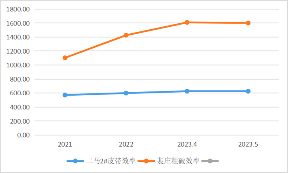 跑出效率加速度。大石河铁矿围绕打造“极高效率”样板产线车间,大力开展现场调查研究,查找工艺制约短板,精益生产过程组织,定整改措施,抓现场改善,入选小时效率指标实现螺旋攀升。2023年4月、5月两条产线均再次实现小时效率历史区间值突破,其中二马月均小时效率指标分别完成626.4t/h、626.3t/h;裴庄月均小时效率指标分别完成1608.9t/h、1600.6t/h,生产成本逐步降低,产业发展优质前行。