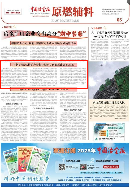 今年初以来,首钢矿业深入贯彻落实高质量发展要求,坚持稳中求进,围绕建设安全绿色智慧冶金矿山头部企业的目标,紧盯经营生产中的痛点、堵点、难点问题,不断激发内生动力。上半年,该公司营业收入、利润、铁精矿产量等主要经济指标均超额完成预算进度,其中铁精矿产量超计划9%,利润超计划88.95%,实现“时间过半、任务过半”。