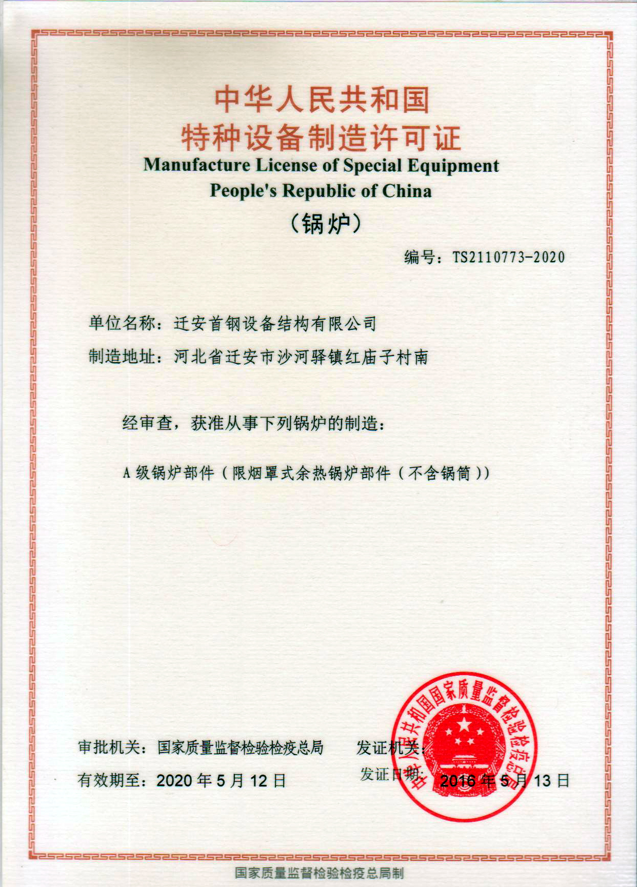 迁安首钢设备结构有限公司