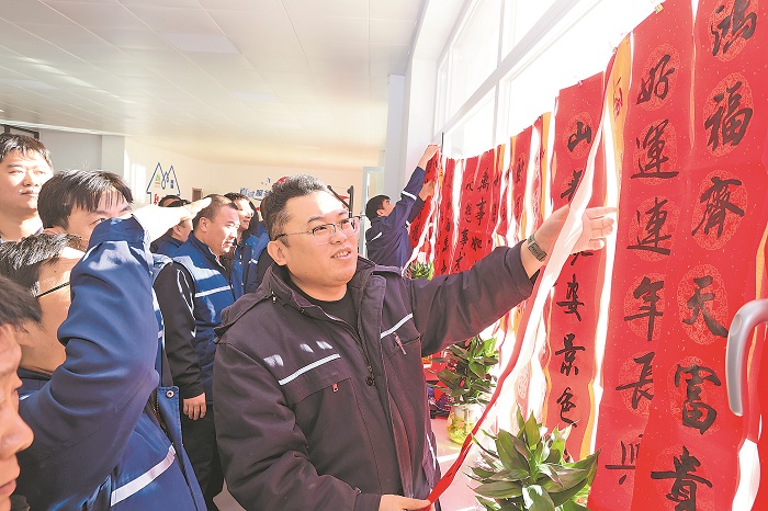 当日,迁安市文旅局组织的数十名书法家、非遗传承人齐聚唐首马铁矿职工活动中心,交流献艺,挥毫泼墨,为职工写春联、送剪纸,呈上一份“文化年货”大礼包。